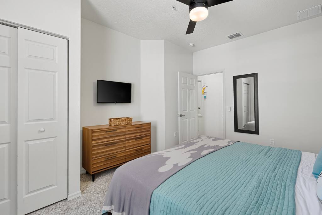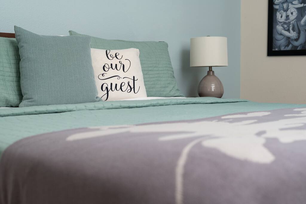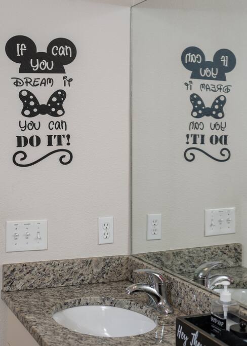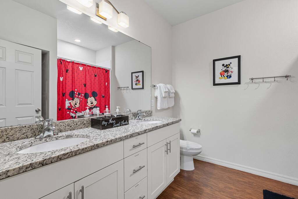 Just as we would expect for our own family-we try to provide ideal accommodations for a great, enjoyable stay. You will love the convenience of self-check-in with keyless entry and complimentary WiFi. Our home is located within a gated, 24-hour security resort community with many amenities including a clubhouse, kids’ playroom and playground, fitness center, volleyball court, heated pool, and hot tub. ⭐️YOUR VACATION HOME⭐️ ✔️Kid-imagined Mickey themed rooms and bathroom ✔️Free High Speed WiFi | Streaming Access ✔️Fully equipped kitchen with kid-friendly dinnerware ✔️Close proximity to all Orlando area attractions ✔️Gated community w/24Hr onsite security | Private keyless entry guest access code | Free onsite parking ⭐️KITCHEN⭐️ -Stocked kitchen with items you need such as cookware, utensils, dinnerware, and small appliances to prepare family meals -Dining table that seats 6, barstools for additional seating ⭐️LIVING AREA⭐️ -Smart HD TV with streaming services (Netflix, Disney+, HULU, Amazon Prime Video) -Couch, LoveSeat, Sleeper Sofa pullout ⭐️BEDROOMS/BATHROOMS⭐️ -Three bedrooms (2 king sized beds, 2 double beds) that can accommodate up to 8 people comfortably -Two FULL Bathrooms -Smart HD TVs and ceiling fans in all bedrooms ⭐️WHAT WE PROVIDE⭐️ -Free WiFi and access to streaming services on all TVs in the home -Washer and dryer, A/C, Iron and Ironing Board, Hair dryers -Toilet paper, paper towels, garbage bags, sponges, dish soap, etc. -Shower gel, shampoo, conditioner, extra sets of bed linens and towels -BABY ITEMS: High Chair, Pack N Play, Stroller, Stair Gates -Free Onsite Parking and access to all resort community amenities