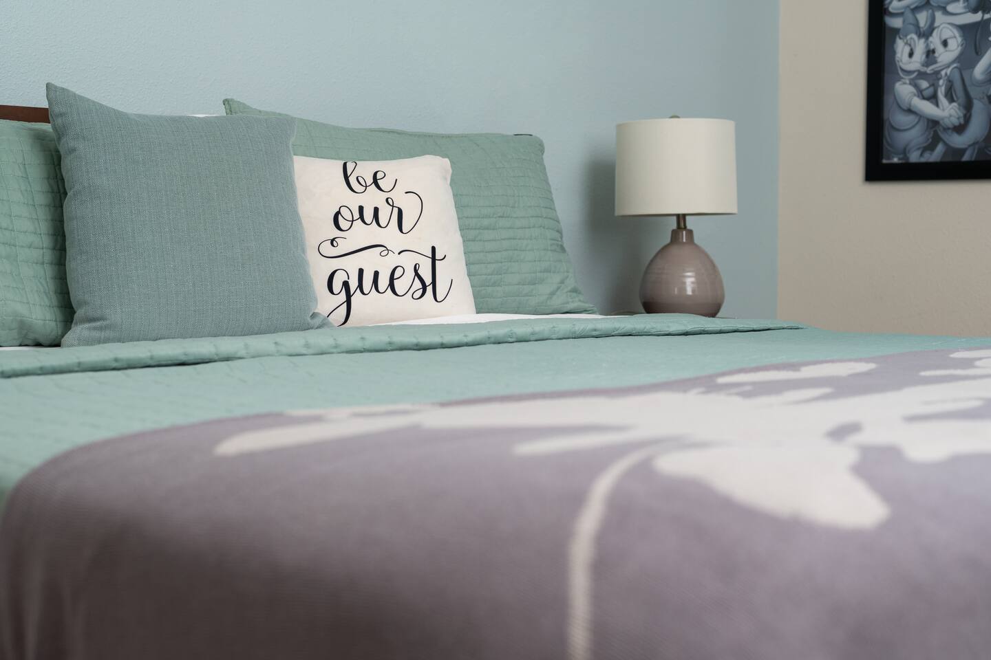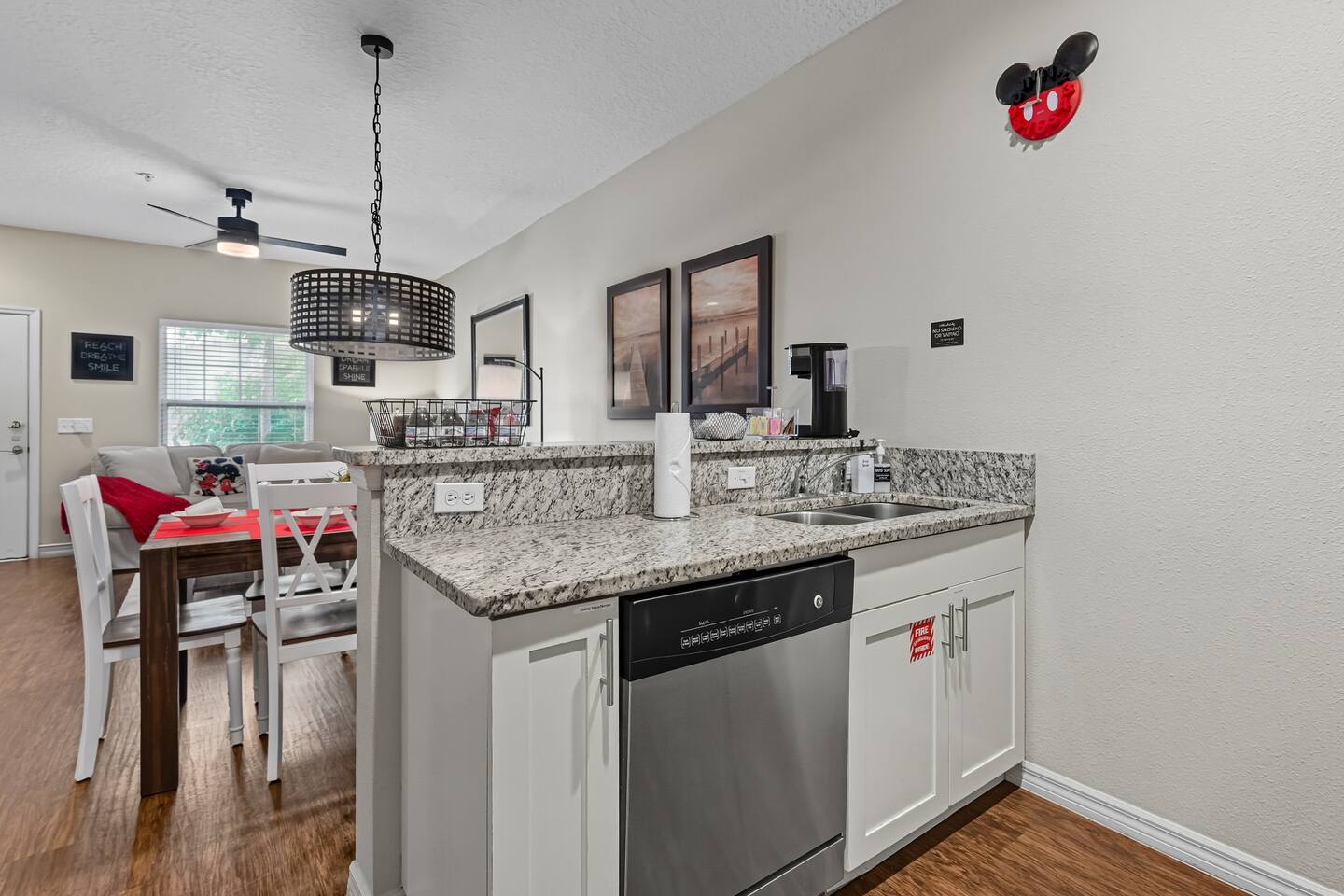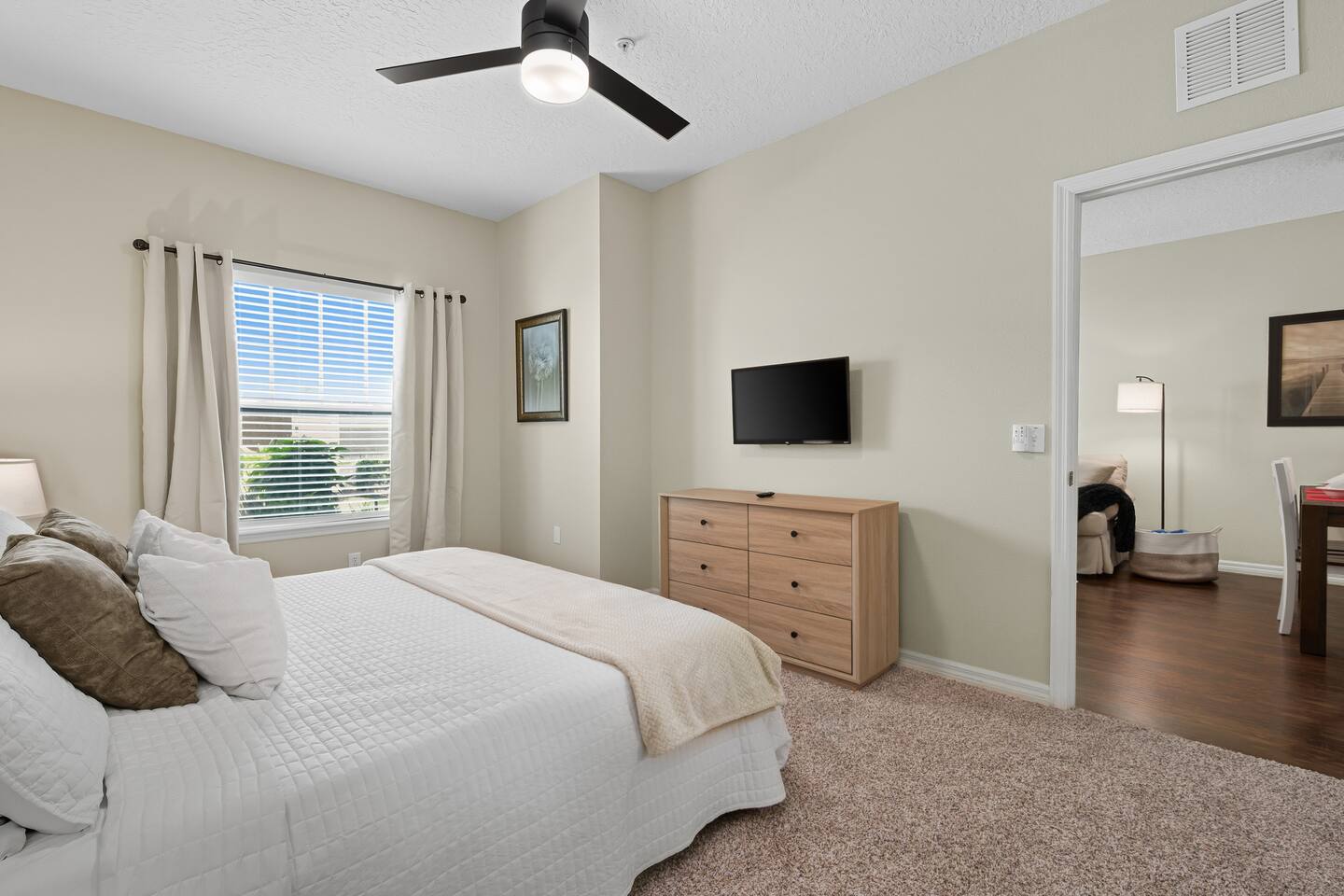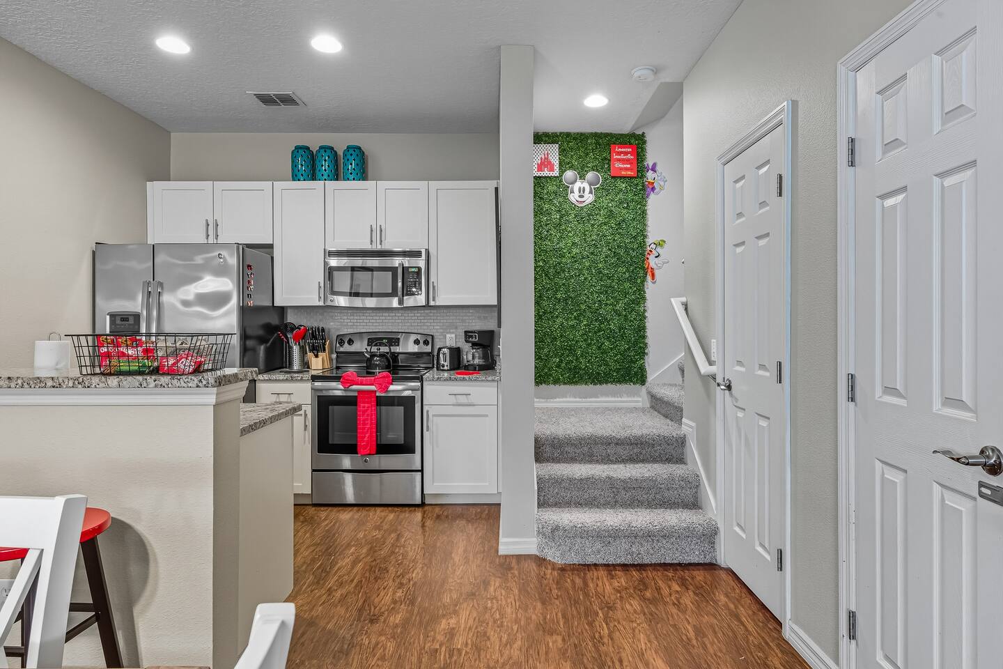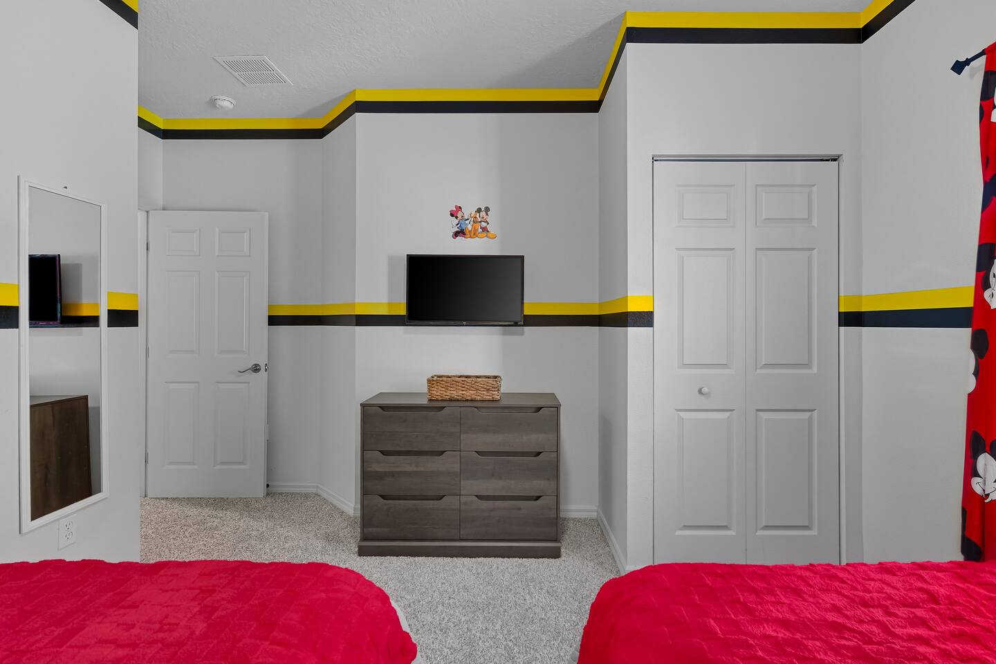 ⭐️YOUR VACATION HOME⭐️ ✔️Kid-imagined Mickey themed rooms and bathroom ✔️Free High Speed WiFi | Streaming Access ✔️Fully equipped kitchen with kid-friendly dinnerware ✔️Close proximity to all Orlando area attractions ✔️Gated community w/24Hr onsite security | Private keyless entry guest access code | Free onsite parking ⭐️KITCHEN⭐️ -Stocked kitchen with items you need such as cookware, utensils, dinnerware, and small appliances to prepare family meals -Dining table that seats 6, barstools for additional seating ⭐️LIVING AREA⭐️ -Smart HD TV with available streaming services (Netflix, Disney+, HULU, Amazon Prime Video) -Couch, LoveSeat, Sleeper Sofa pullout ⭐️BEDROOMS/BATHROOMS⭐️ -Three bedrooms (2 king sized beds, 2 double beds) that can accommodate up to 8 people comfortably -Two FULL Bathrooms -Smart HD TVs and ceiling fans in all bedrooms ⭐️WHAT WE PROVIDE⭐️ -Free WiFi and access to streaming services on all TVs in the home -Washer and dryer, A/C, Iron and Ironing Board, Hair dryers -Toilet paper, paper towels, garbage bags, sponges, dish soap, etc. -Shower gel, shampoo, conditioner, extra sets of bed linens and towels -BABY ITEMS: High Chair, Pack N Play, Stroller, Stair Gates -Free Onsite Parking and access to all resort community amenities ⭐️COMMUNITY FEATURES⭐️ Lucaya Village is a gated, resort community with 24 Hr security. Guests will have access to enjoy all of the amenities including a clubhouse, zero entry pool and hot tub, fitness center, kids’ playground, BBQ area, volleyball court, a Marvel themed playroom for the kids and more. The Clubhouse has a bakery and café and provides concierge services such as transportation and theme park ticket purchases. There is also a full service business center with computers, printers and high speed internet. ⭐️NEARBY POPULAR DESTINATIONS⭐️ WALT DISNEY WORLD (5-9 miles): Animal Kingdom, Magic Kingdom, Epcot, Typhoon Lagoon Water Park UNIVERSAL STUDIOS (approx. 15 miles): Islands of Adventures, Volcano Bay, Wizarding World of Harry Potter, Citywalk Orlando ORLANDO ATTRACTIONS (approx. 10 miles): Aquatica Orlando, SeaWorld Orlando, Discovery Cove, WonderWorks Orlando, Andretti Indoor Karting & Games GOLFING: Falcon's Fire Golf Course (2.5 miles), Celebration Golf Club (4 miles) AIRPORT: Orlando International Airport (22 miles)