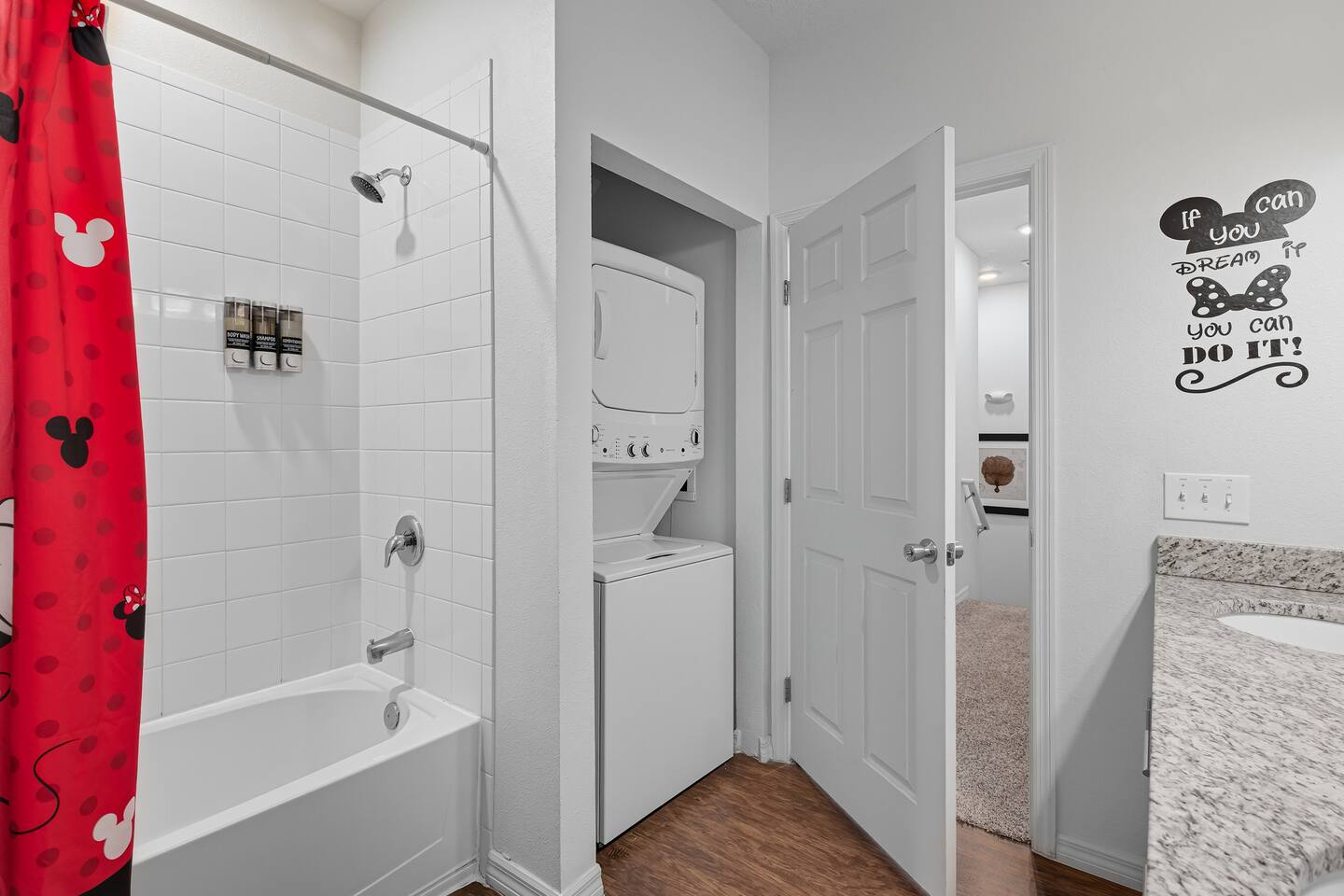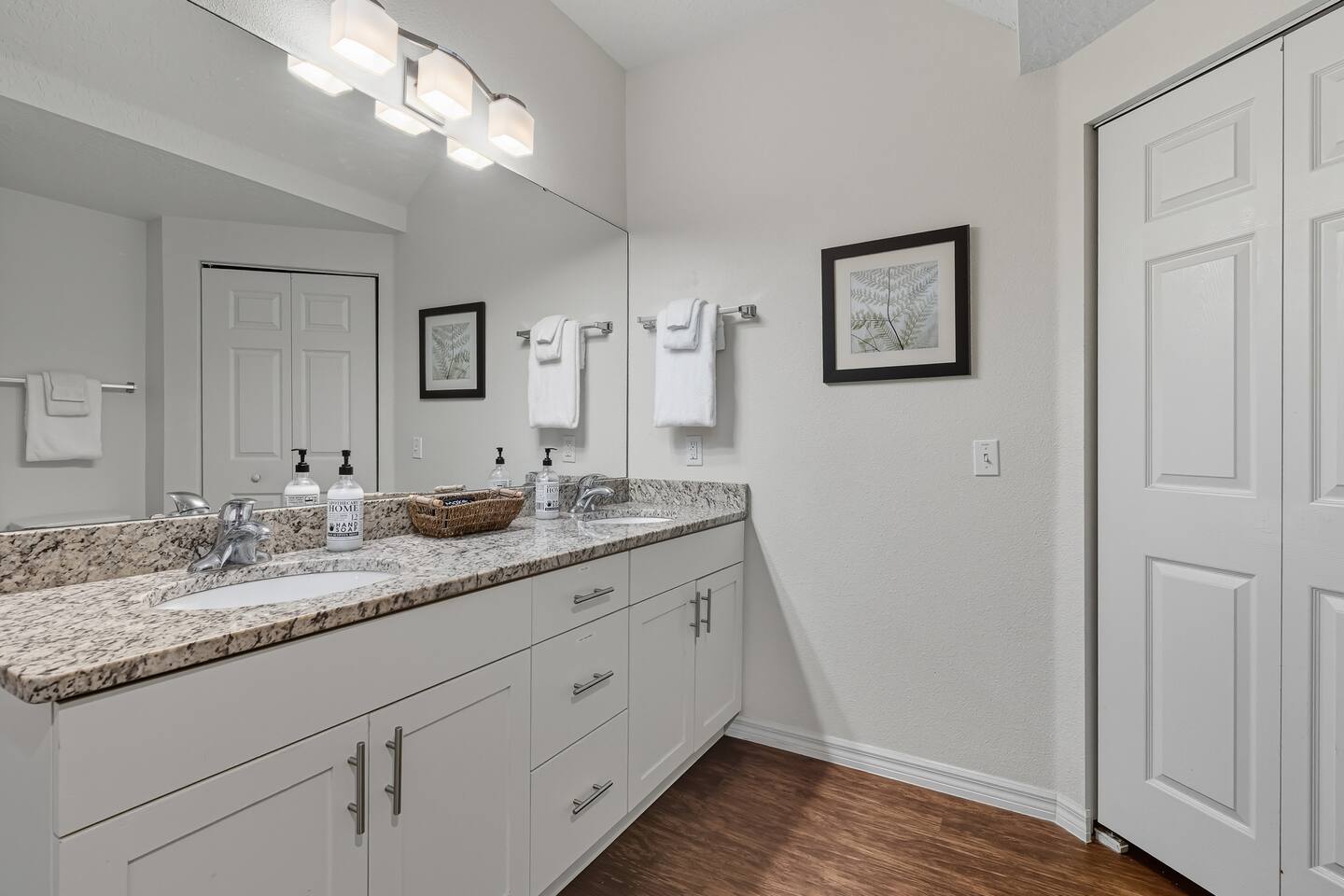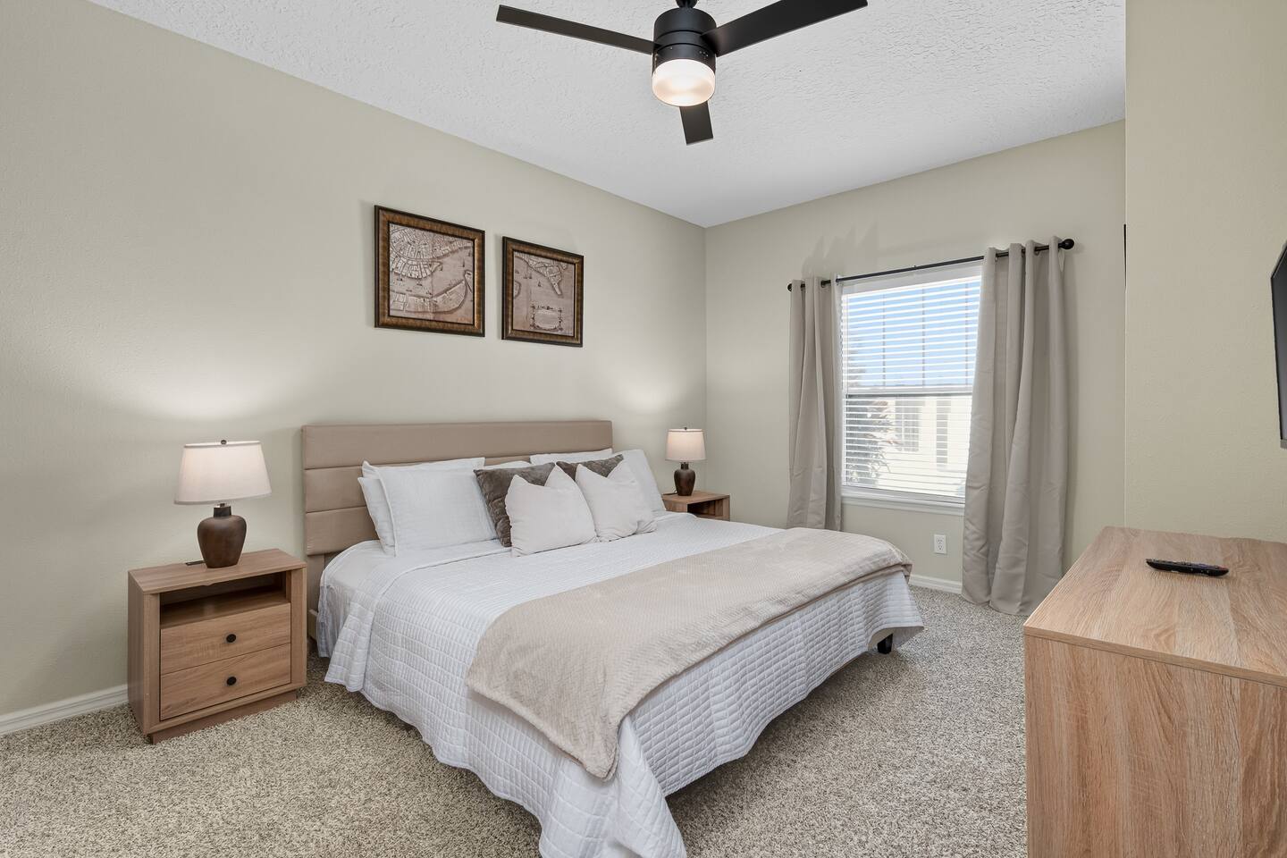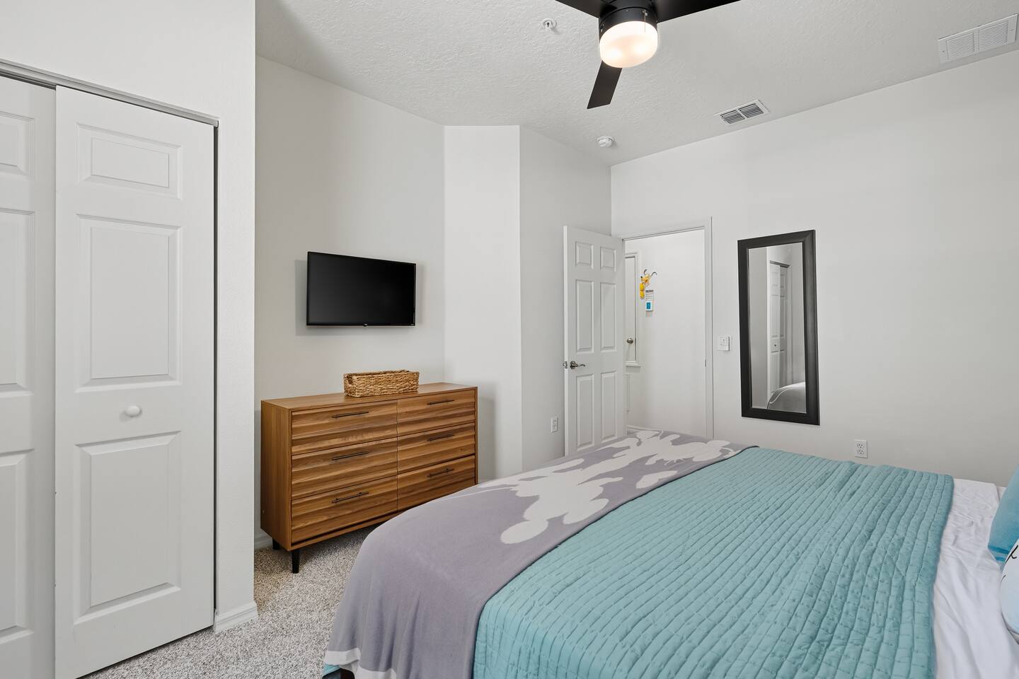 ⭐️YOUR VACATION HOME⭐️ ✔️Kid-imagined Mickey themed rooms and bathroom ✔️Free High Speed WiFi | Streaming Access ✔️Fully equipped kitchen with kid-friendly dinnerware ✔️Close proximity to all Orlando area attractions ✔️Gated community w/24Hr onsite security | Private keyless entry guest access code | Free onsite parking ⭐️KITCHEN⭐️ -Stocked kitchen with items you need such as cookware, utensils, dinnerware, and small appliances to prepare family meals -Dining table that seats 6, barstools for additional seating ⭐️LIVING AREA⭐️ -Smart HD TV with available streaming services (Netflix, Disney+, HULU, Amazon Prime Video) -Couch, LoveSeat, Sleeper Sofa pullout ⭐️BEDROOMS/BATHROOMS⭐️ -Three bedrooms (2 king sized beds, 2 double beds) that can accommodate up to 8 people comfortably -Two FULL Bathrooms -Smart HD TVs and ceiling fans in all bedrooms ⭐️WHAT WE PROVIDE⭐️ -Free WiFi and access to streaming services on all TVs in the home -Washer and dryer, A/C, Iron and Ironing Board, Hair dryers -Toilet paper, paper towels, garbage bags, sponges, dish soap, etc. -Shower gel, shampoo, conditioner, extra sets of bed linens and towels -BABY ITEMS: High Chair, Pack N Play, Stroller, Stair Gates -Free Onsite Parking and access to all resort community amenities ⭐️COMMUNITY FEATURES⭐️ Lucaya Village is a gated, resort community with 24 Hr security. Guests will have access to enjoy all of the amenities including a clubhouse, zero entry pool and hot tub, fitness center, kids’ playground, BBQ area, volleyball court, a Marvel themed playroom for the kids and more. The Clubhouse has a bakery and café and provides concierge services such as transportation and theme park ticket purchases. There is also a full service business center with computers, printers and high speed internet. ⭐️NEARBY POPULAR DESTINATIONS⭐️ WALT DISNEY WORLD (5-9 miles): Animal Kingdom, Magic Kingdom, Epcot, Typhoon Lagoon Water Park UNIVERSAL STUDIOS (approx. 15 miles): Islands of Adventures, Volcano Bay, Wizarding World of Harry Potter, Citywalk Orlando ORLANDO ATTRACTIONS (approx. 10 miles): Aquatica Orlando, SeaWorld Orlando, Discovery Cove, WonderWorks Orlando, Andretti Indoor Karting & Games GOLFING: Falcon's Fire Golf Course (2.5 miles), Celebration Golf Club (4 miles) AIRPORT: Orlando International Airport (22 miles)